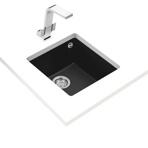 Sob TampoLava-louças de uma baciaTegranito de alta resistênciaNão rugoso e fácil de limparProfundidade da bacia: 200 mmMóveis de 50 cmMedidas gerais (lxp): 440x440mmCor: Preto
