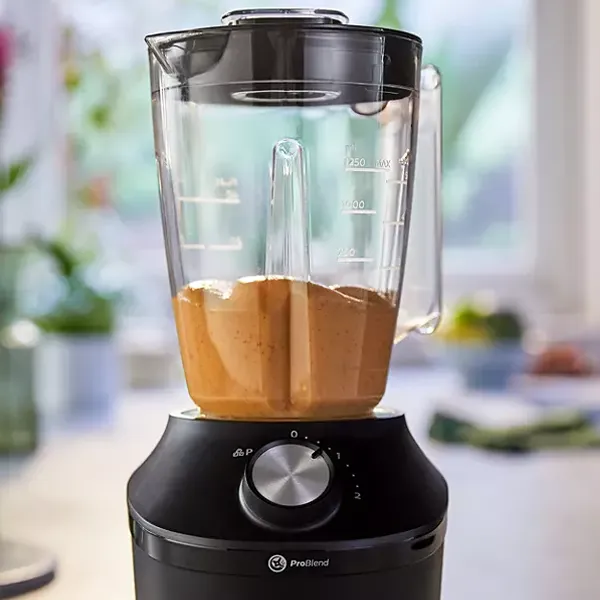 Potência: 600W Tecnologia ProBlend com lâmina de aço inoxidável de 4 estrelas Durabilidade: sensor de proteção térmica do motor Fácil de limpar: lavável na máquina de lavar a loiça Tamanho do jarro: 2 l de capacidade máxima Tamanho do jarro: 1,25 l de capacidade efetiva Definições de velocidade: 2 velocidade + impulso Fácil de limpar: lâmina amovível Fácil de guardar: armazenamento para alimentação e cabo integrado Não vibra: ventosas Material do jarro: jarro de vidro Dimensões do produto (CxLxA): 168x192x381 mm Cor: Preto