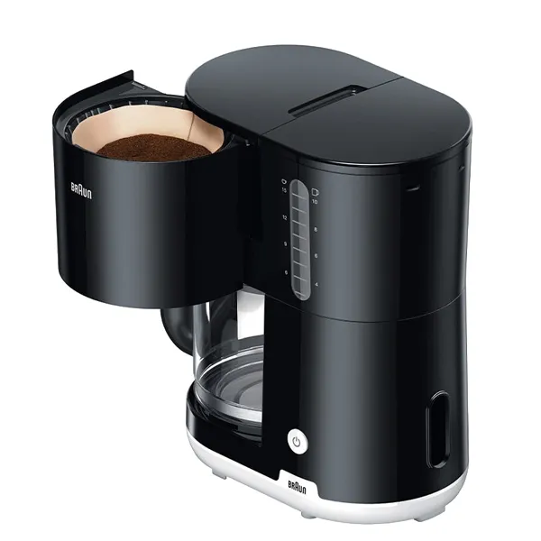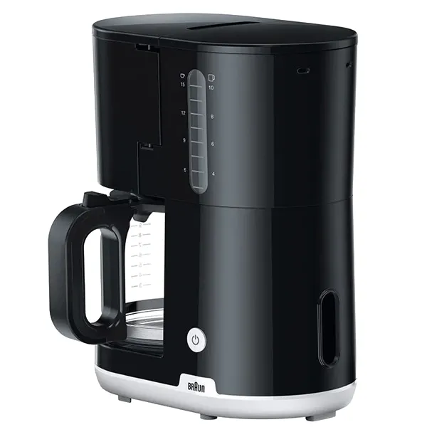 Potência: 1000W Sistema OptiBrew Tipo de jarra: AromaCarafe Desliga-se automaticamente Capacidade: 10/15 chávenas Cesto do filtro: Suporte de filtro giratório e removível Antigotas Cor: Preto Botões iluminados Armazenamento do cabo Peças laváveis na máquina de lavar loiça Isento de BPA (peças em contacto com os alimentos)