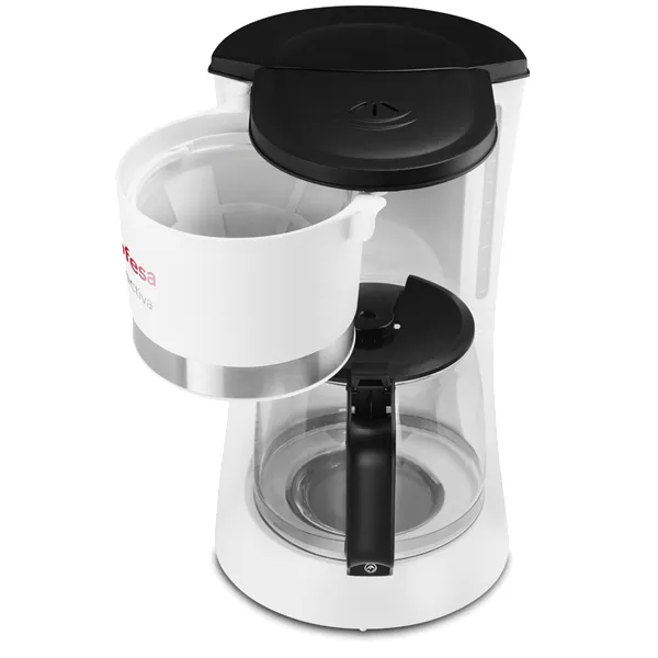 Potência: 680W Capacidade: 12 chávenas – 1,2lts Suporte de filtro giratório e removível Filtro permanente Placa de aquecimento antiaderente Válvula anti-gota Desconexão automática Colher doseadora de café