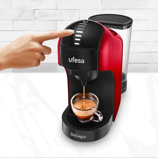 Potência: 1400W Painel de controlo tátil com 7 níveis Depósito de água amovível de 1L Compatível com cápsulas Nespresso, Dolce Gusto e café moído Desligamento automático Design compacto Bomba de pressão de 15 bar