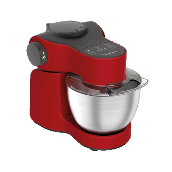 Potência: 1000 W Velocidades: 7 Função Pulse Número de programas: 4 Funcionalidades: bate, mistura, envolve Movimento planetário Compacto Massa para pão: 0.8 kg Massa para bolo: 2.7 kg Capacidade total da taça: 4 L Material da taça: Inox escovado Batedor Gancho Batedor de arames Liquidificadora Capacidade total liquidificadora: 1 L Cores: Vermelho