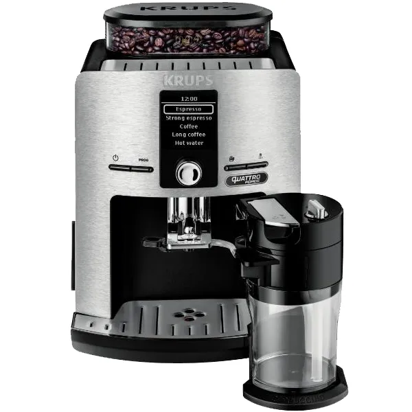 Tipo: Sistema automático de café em grão Tecnologia Quattro Force Potência: 1450 W Pressão: 15 bares Sistema Termobloco compacto Quantidade ajustável Interface: Ecrã LCD Moinho de café: Metálico Capacidade do depósito de café em grão: 275 g Capacidade do depósito de água: 1.7 L Capacidade do depósito de borras: 9 Acessório: Cappuccino Número de receitas: 6 Número de cafés em simultâneo: 1 Quantidade de água ajustável Regulação da moagem do café: Manual com 3 níveis Níveis de temperatura: 3 Duplo ciclo de moagem automático para cafés longos (220 ml) Saída de café ajustável em altura Função vapor Função água quente Aviso descalcificação: Automático Programa enxaguamento: Manual Programa enxaguamento para sistema de leite: Automático Programa de limpeza: Automático Programa de limpeza para sistema de leite: Automático Lembrete descalcificação: Automático Sistema “Aqua Filter” Relógio Botão On/Off (ligar/desligar) Ligar automático programável Desligar automático programável Gaveta de recolha de pingos amovível Cores: Alumínio