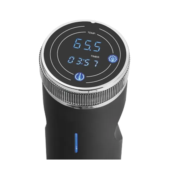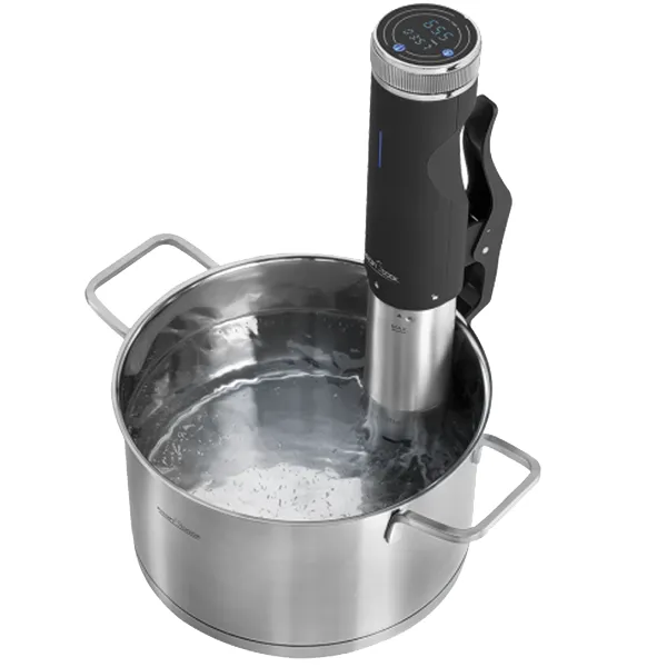 Revestimento em inox com pegas ergonómicas Cozedura precisa com controlo de temperatuta electrónico (desvio máx. +/- 0.5ºC) Vitaminas, nutrientes e sabores retidos Função cozedura suave/lenta, preparação iogurtes e manter temperatura quente Circulação de água:7-8l/min Visor LCD multifuncional: seleção de temperatura, temperatura atual e temporizador Controle painel touch Temperaturas: 0º a 90º (em passos de 0.5ºc) Desliga-se automáticamente aquando um baixo nível de água Temporizador 99h Para recipientes resistentes ao calor com 18cm de altura mínima Inclui clip Fácil limpeza 230V, 50/60Hz 800W