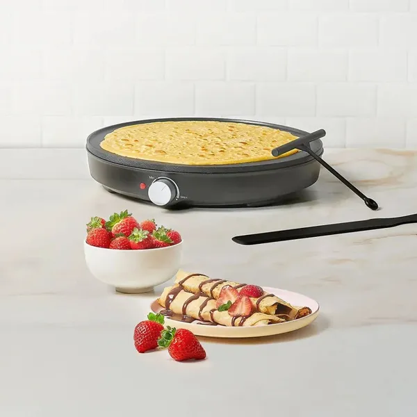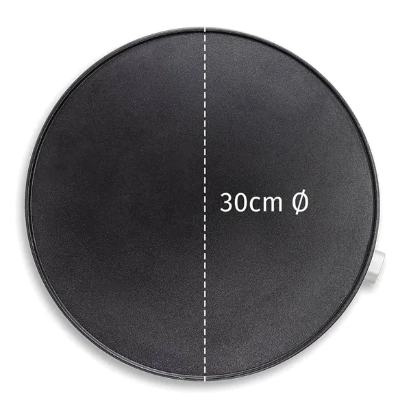 Potência: 1000W Placas com revestimento antiaderente para facilitar a limpeza Luz de preparação controlada por termóstato Disjuntor térmico de segurança Pés antideslizantes Botão de controlo de temperatura ajustável Tamanho da placa: 30cm