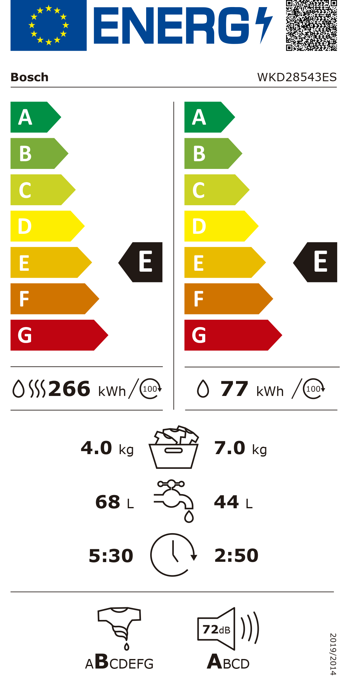 Energia³ / Água⁴ Lavar e Secar: 266 kWh / 68 litros