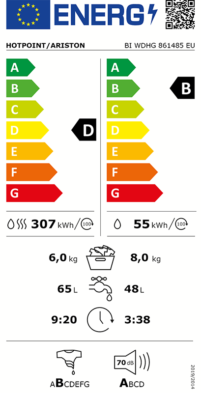 Mais poupança energética. Este aparelho Hotpoint garante semopre desempenho elevado e baixo consumo graças à classe energética D|B