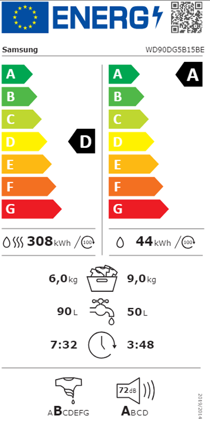 Classe de Eficiência Energética: D/A-10%* (Completo/Lavagem)