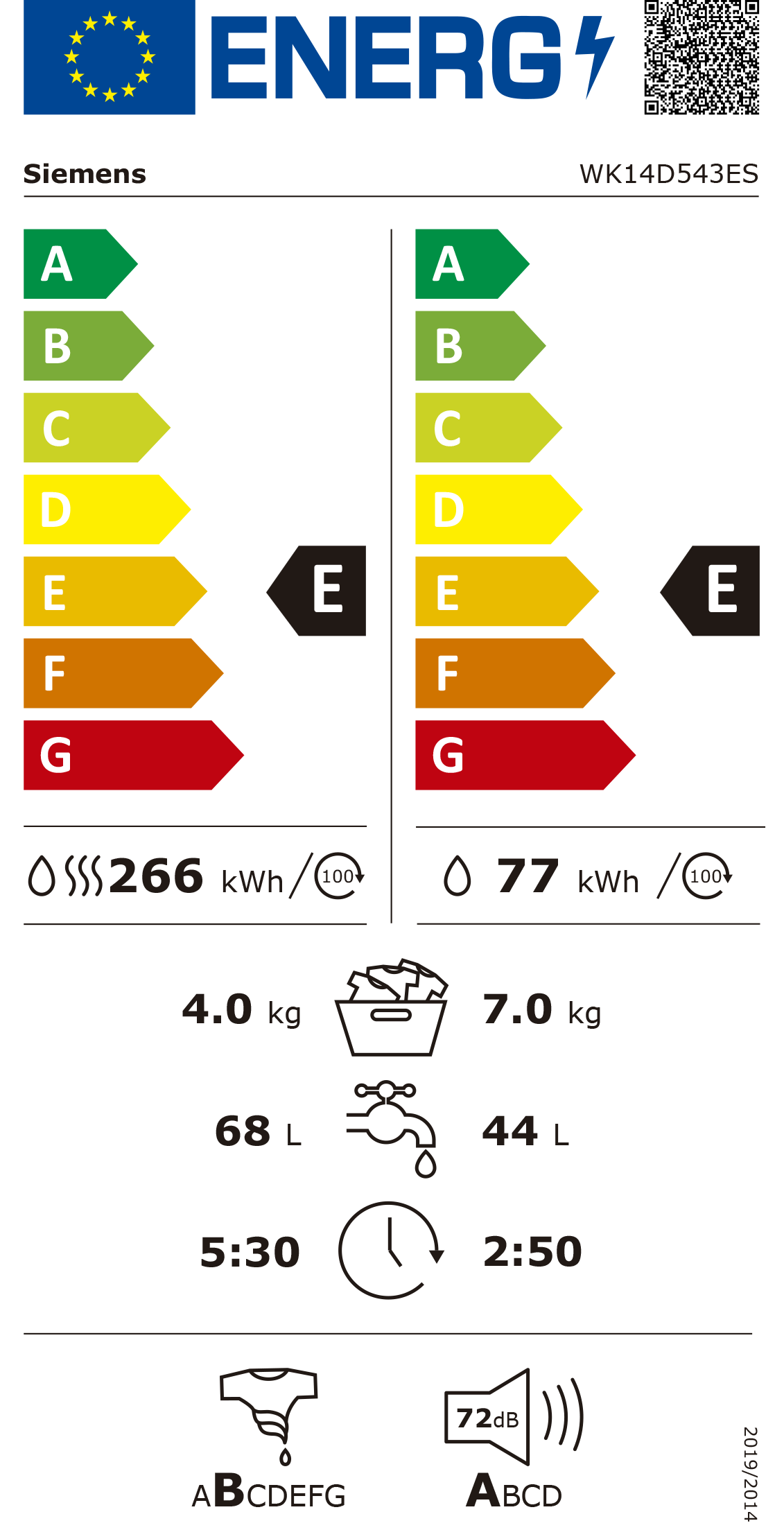 Energia / Água Lavar e Secar: 266 kWh / 68 litros
