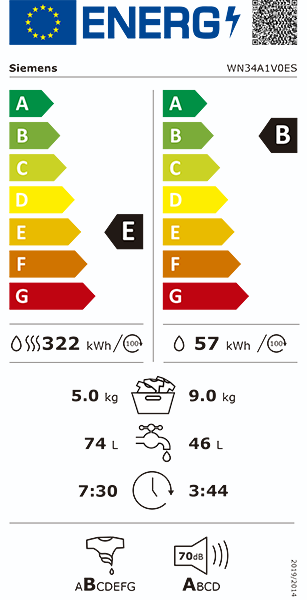 Energia / Água Lavar e Secar: 322 kWh / 74 litros
