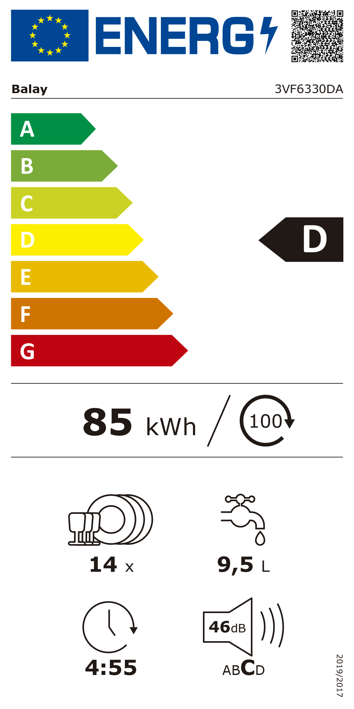 Consumo de água programa ECO 50 ºC: 9.5 litros