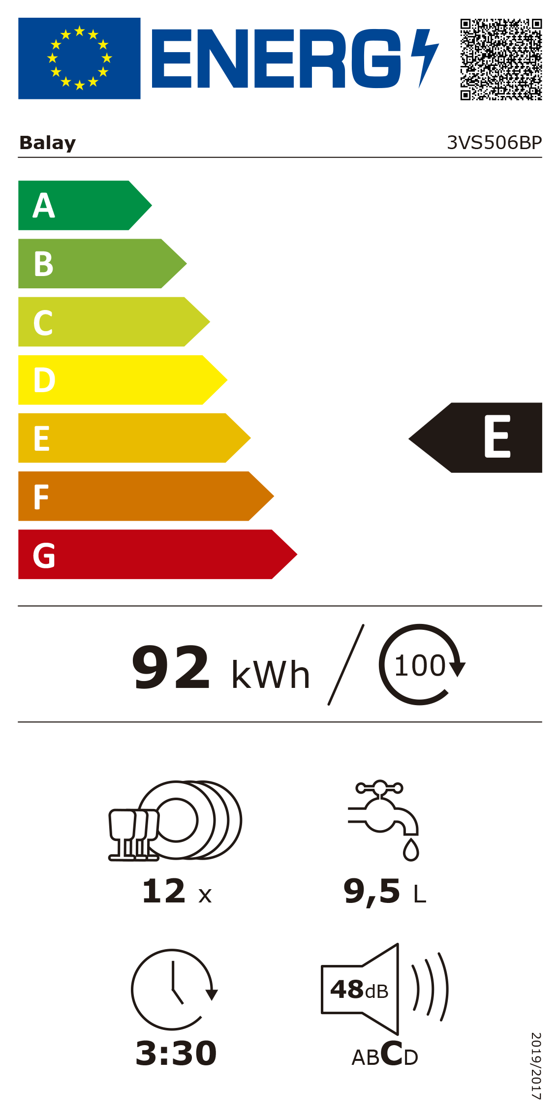 Consumo de água programa ECO 50 ºC: 9.5 litros
