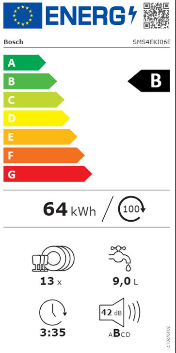 ³ Consumo de água em litros por ciclo (no programa Eco 50 °C)