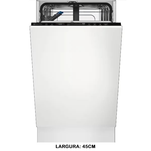 Indicadores LED: Abrilhantador, Sal, Alarme Sonoro, Fase de secagem, Programa selecionado, Indicador luminoso no chão com duas cores, Início diferido 1h-24h, Extra poderoso, Extra Higiene, GlassCare, Machine Care