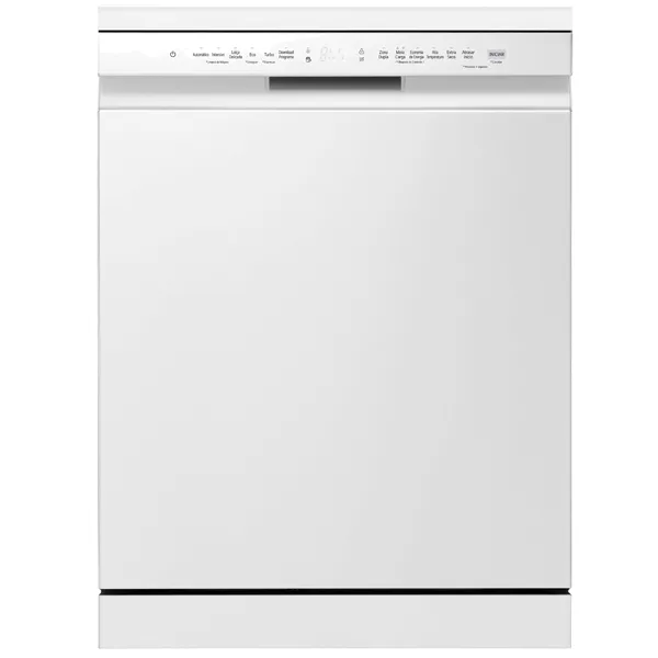 Opções de lavagem: Zona dupla; Meia carga; Poupança de energia; Alta temperatura; Secagem extra; Início diferido Até 12 horas; Bloqueio para crianças