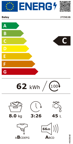 Classe de eficiência de secagem por centrifugação do programa eco 40-60: B