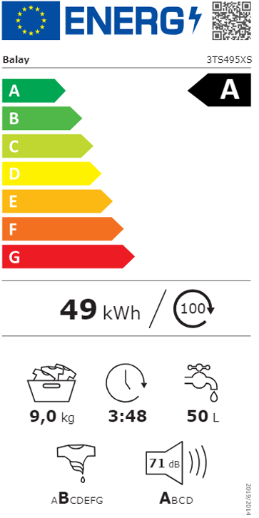 Índice de eficiência energética para o ciclo de lavagem: 51.4