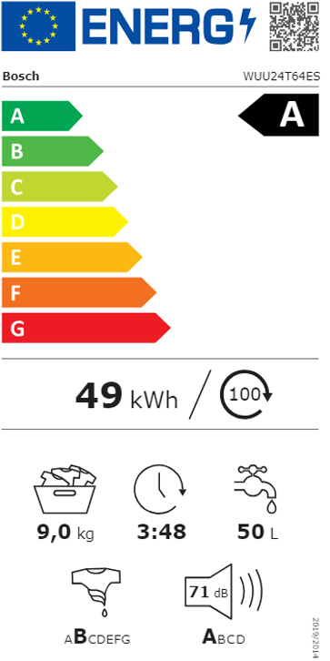Display grande de LED com indicação do decorrer do programa, temperatura, velocidade máx. de centrifugação, tempo residual e pré-programação de 24 h de fim de programa, recomendação de carga e indicação do consumo