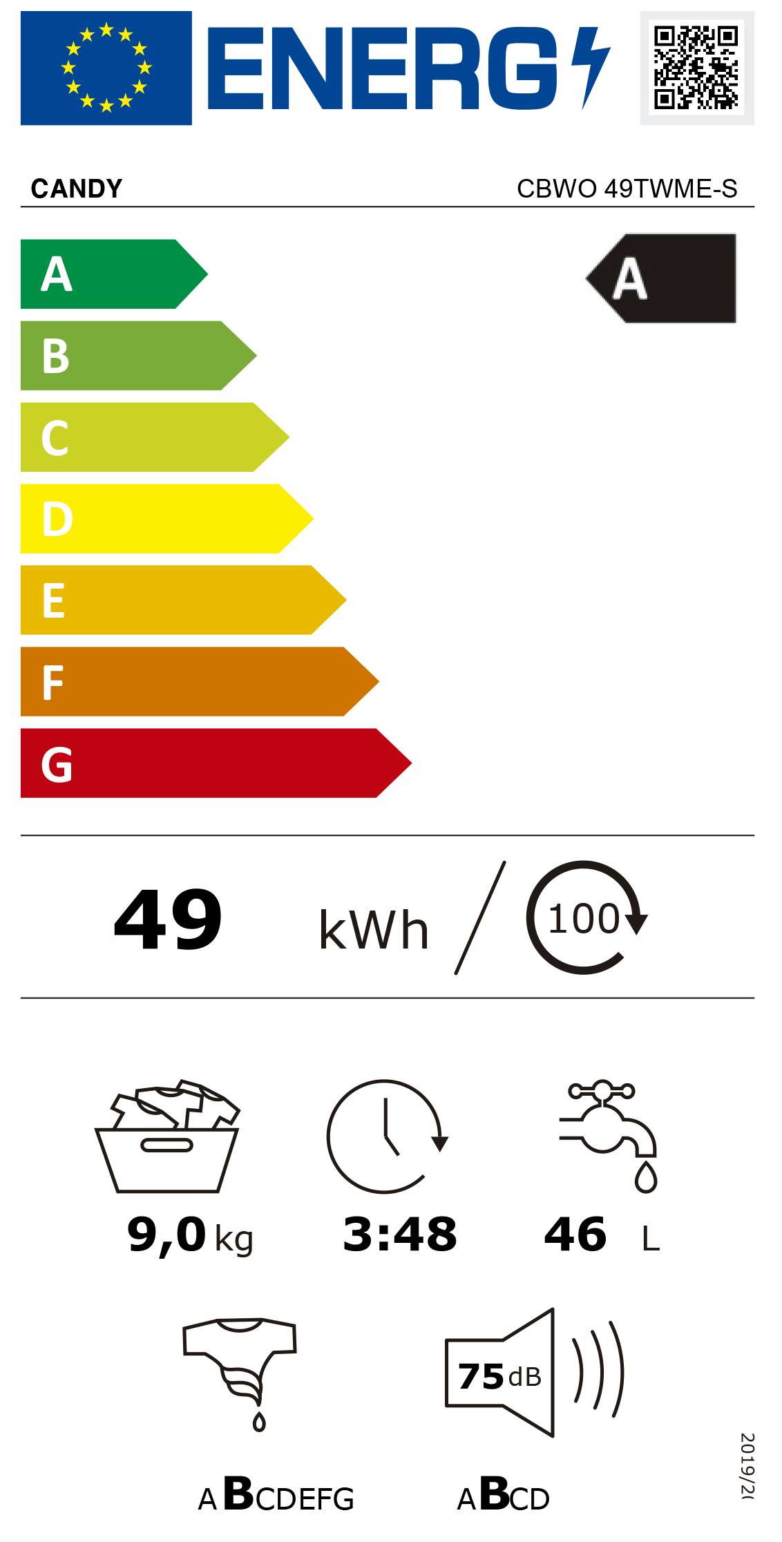 Capacidade de carga na lavagem – NOVA (2010/30/EC): 9 Kg