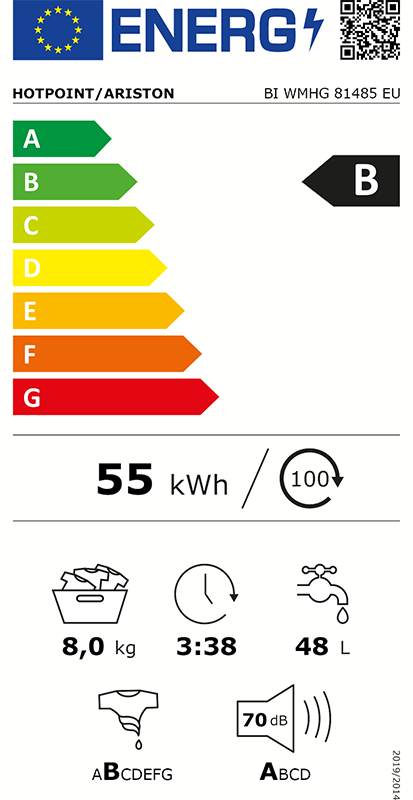 Classe de eficiência de secagem por centrifugação do programa eco 40-60 : B