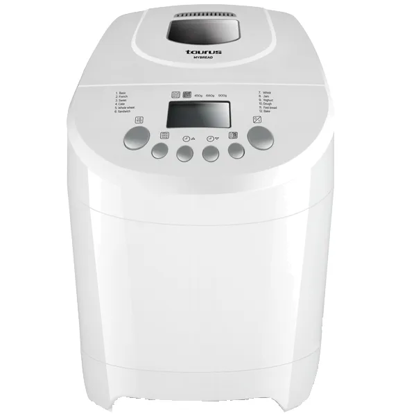 Potência: 460W / 600W My Bread controla os tempos: amassa, deixa repousar e coze. 12 programas predefinidos para pães, bolos e compotas. Dois tipos de peso: 600 ou 900 gramas. Cuba desmontável para uma limpeza fácil. Tampa transparente para controlar o processo de cozedura. Função “manter quente” de 60 min. Revestimento antiaderente. 3 níveis de tostagem. Programável até 13 horas. Pés antideslizantes. Acessórios: Copo doseador, pá misturadora e colher de medida