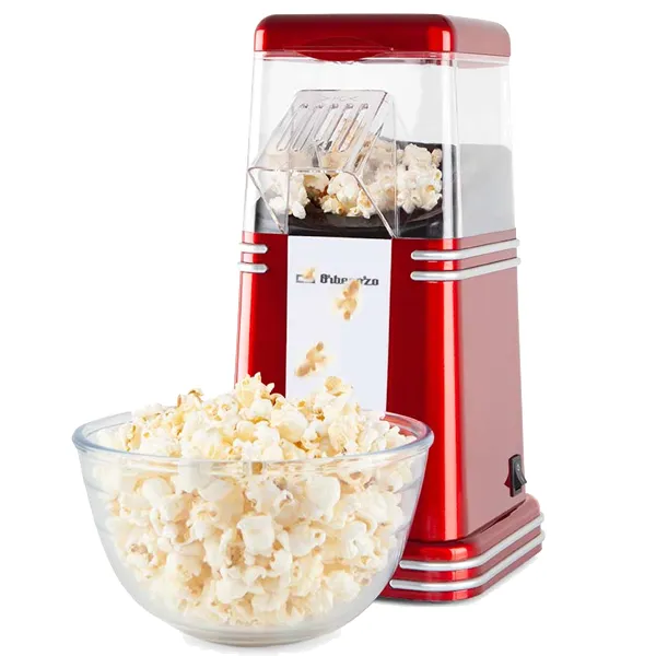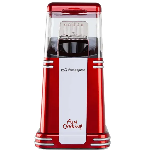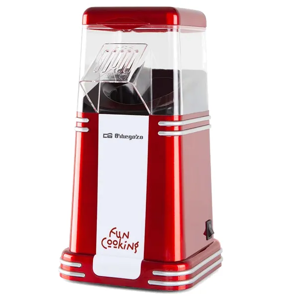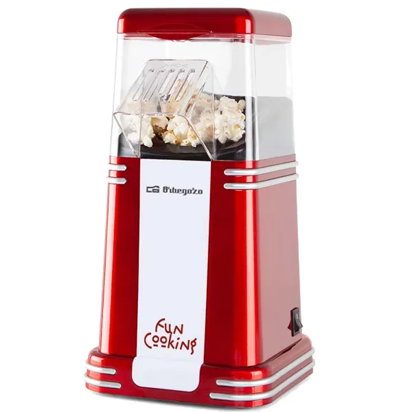 Potência: 1200W Operação rápida e fácil, pipocas em menos de 3 minutos Fácil de limpar Design vintage Tampa removível transparente Orifício de saída da pipoca Cozinha saudável, sem a necessidade de adicionar óleo ou manteiga Ideal para casa, escritório, barco, piquenique e camping Conexão: 220 – 240V ~ 50Hz