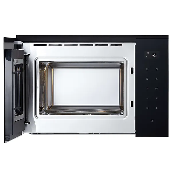 Capacidade: 25l Cor: Aço Inoxidável Com Vidro Preto Display: LED Com Vidro Tátil Iluminação LED Diâmetro do prato giratório: 245mm Potência de Funcionamento: 900W Micro-ondas: 1450W Grill: 1000W Combi Micro-ondas + Grill: 1450W Relógio Temporizador Bloqueio Para Crianças Início Rápido Descongelamento Automático Confeção Automática: 8 programas: Pizza, Carne, Vegetais, Pasta, Batatas, Peixe, Bebidas, Pipocas) Opção Mais / Menos Dimensões do Produto (L*A*P) 592*396*388mm Dimensões do Nicho (L*A*P) 560*380*550mm