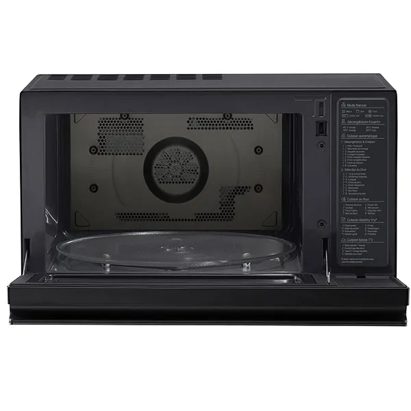 Tipo: Convecção InfravermelhosCapacidade (L): 39Cor exterior: PretoDesign porta: SmogAbertura da porta: Puxar para baixoBase do prato giratório: HexagonalDiâmetro do prato giratório (mm): 360Painel de Controlo: Por Toque e Botão RotativoDisplay: LED BrancoTipo de Resistência Carvão + QuartzoOutput (M/W): 1100Micro-ondas (W): 1350Grill (W): 950Convencção (W): 1850Alimentação Elétrica (V/Hz): 230/50Dimensões:– Interior (LxAxP): 395 x 262 x 378mm– Exterior (LxAxP): 540 x 325 x 523mmPeso: 16.4kgFunções: Relógio, Definição de hora, Bloqueio crianças, Início Rápido, Mais/MenosFunção Cozinhas/Descongelar:– Cozinhar & Descongelar: 8– Assados & Doces: 8– Menu Popular: 8– Cozedura lenta: 4– Descongelar com Inverter: 4– Fritar Saudável: 8Acessórios: Bandeja Crocante