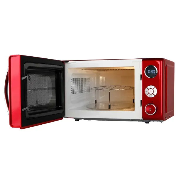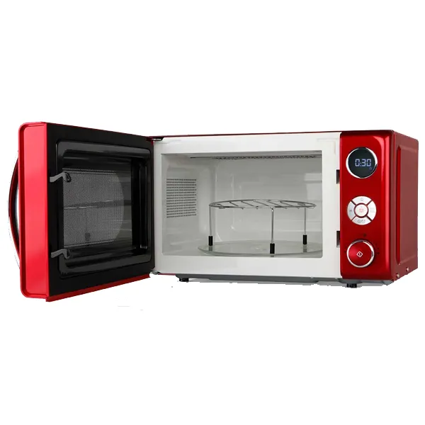 Capacidade: 20lts Potência micro ondas 700W e grill de 900W 10 níveis de potência Grill com resistência de quartzo Display de controlo LED Temporizador digital até 95min Bloqueio automático de segurança para crianças 8 menus pré-configurados Início rápido Cozedura multifunções: podem ser definidos 3 programas diferentes para uma única sequência Descongelação de acordo com o peso 2 funções combinadas Sinal acústico de fim de cozinhado Detalhes cromados no painel de controlo e na pega Prato giratório com diâmetro de 24,5cm Dimensões (LxAxP): 45,2×26,2×36,3cm