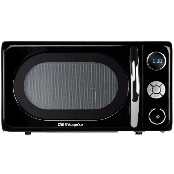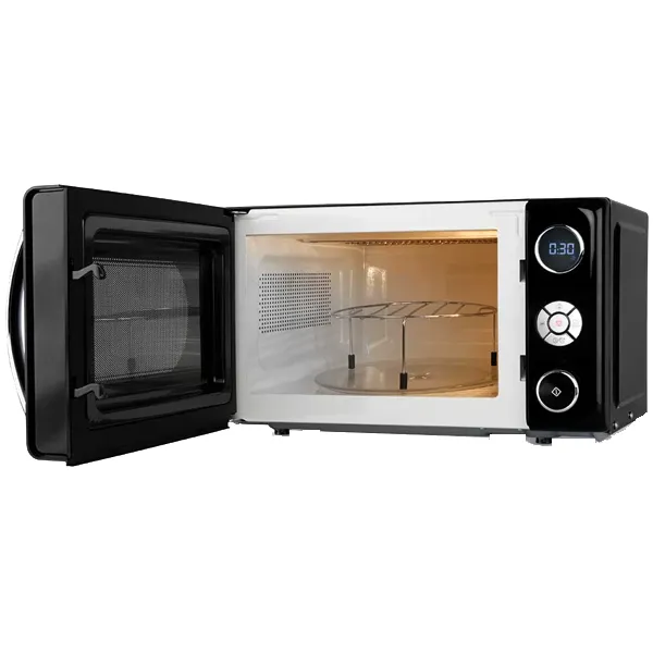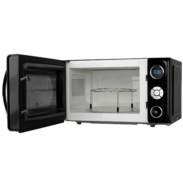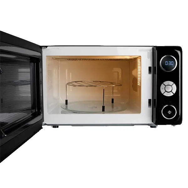 Potência micro ondas: 700W Potência grill: 900W Capacidade: 20lts 10 níveis de potência do micro ondas Grill com elementos de aquecimento de Quartzo Display de controlo LED Temporizador digital de 95 min Bloqueio de segurança automático para crianças 8 menus pré-configurados Início rápido Cozedura multifunções: podem ser definidos 3 programas diferentes para uma única sequência Descongelação de acordo com o peso 2 funções combinadas Sinal acústico de fim de cozinhado Detalhes cromados no painel de controlo e na pega Prato giratório com um diâmetro de 24,5cm
