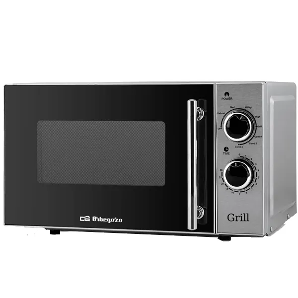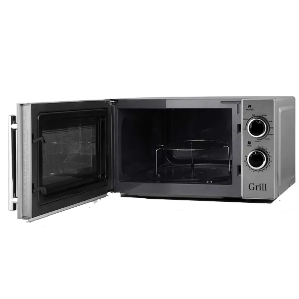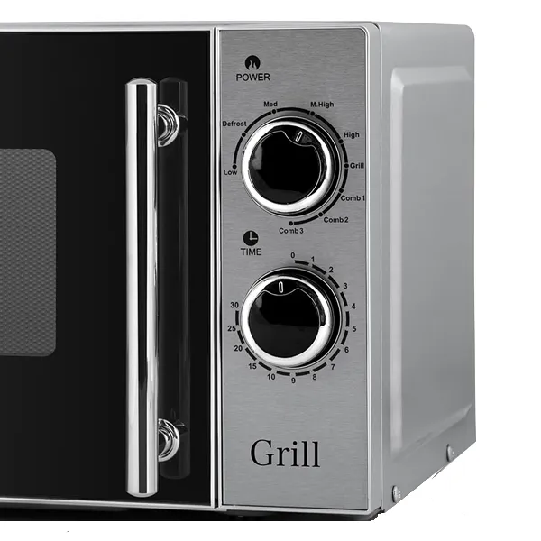 Potência micro ondas: 700W Potência grill: 900W Capacidade: 20lts 5 níveis de potência Grelha com elementos de aquecimento de quartzo 3 funções combinadas grill + micro ondas Temporizador de 30 minutos Programa de descongelação Sinal acústico de fim de cozinhado Porta com fecho de segurança Painel frontal em aço inoxidável Inclui grelha para função grill