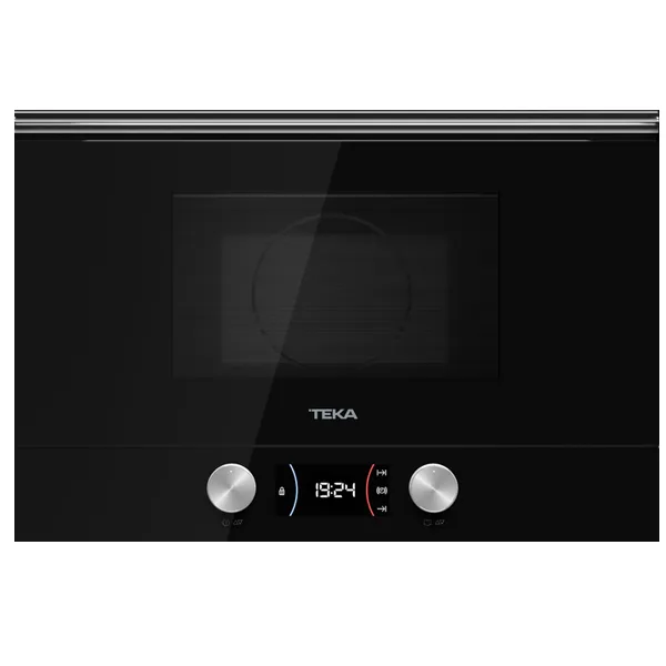 Micro-ondas de base cerâmica + grill Painel de comandos eletrónico em vidro e relógio digital Grill rebatível, 1.200 W 5 níveis de potência, 850 W de saída de micro-ondas Interior em aço inoxidável Base cerâmica de aquecimento homogéneo Ventilação forçada tangencial Seletor de tempo e funções eletrónico Início rápido 30” Descongelação por tempo e peso (5 programas) 9 menus de acesso direto Prato tostador e grelha para grelhar e gratinar Abertura eletrónica da porta apenas para o lado esquerdo Dimensões (axlxp): 390x595x334mm Cor: Vidro Preto