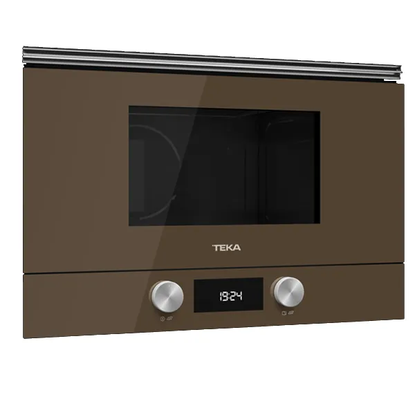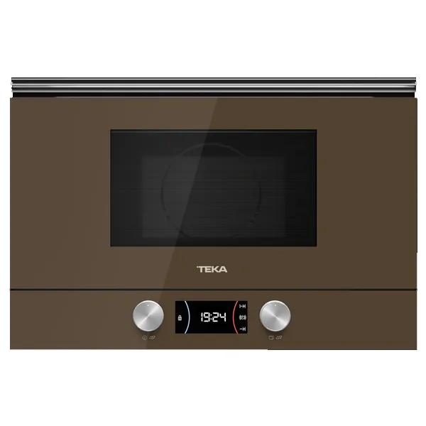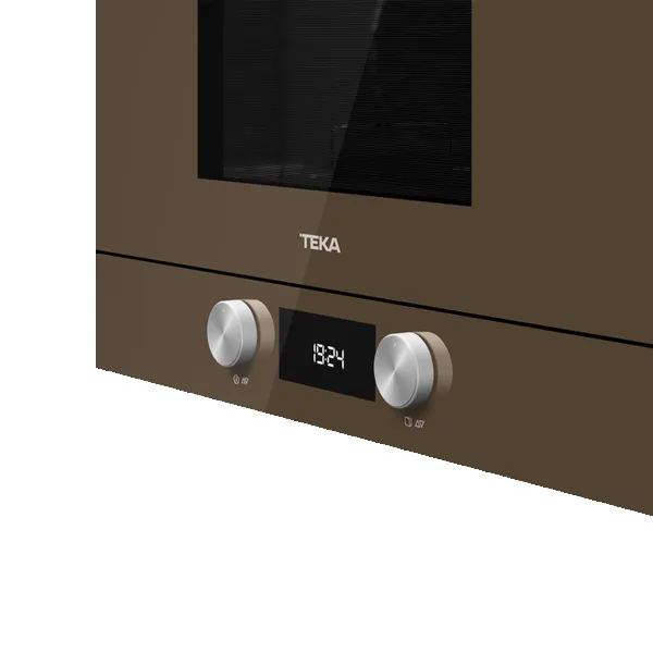 Micro-ondas de base cerâmica + grill Painel de comandos eletrónico em vidro e relógio digital Grill rebatível, 1.200 W 5 níveis de potência, 850 W de saída de micro-ondas Interior em aço inoxidável Base cerâmica de aquecimento homogéneo Ventilação forçada tangencial Seletor de tempo e funções eletrónico Início rápido 30” Descongelação por tempo e peso (5 programas) 9 menus de acesso direto Prato tostador e grelha para grelhar e gratinar Abertura eletrónica da porta apenas para o lado esquerdo Altura do produto (mm): 390 Largura do produto (mm): 595 Profundidade do produto (mm): 334 Cor: Castanho