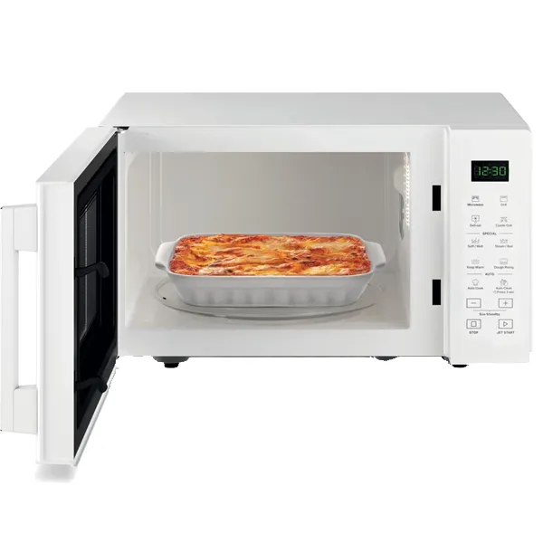Altura (cm): 28.1 Largura (cm): 48.3 Profundidade (cm): 41.9 Tipo de cozedura: MO + Função Grill Potência máxima micro-ondas (W): 900 Potência do Grill (W): 1000 Corrente (A): 12 Método adicional de cozedura Grill Capacidade (l): 25 Abertura da porta: Puxador Modo de abertura da porta: Dobradiças com puxador Cor: Branco Tipo de display: LED Bloqueio de segurança Grelha Grill Tipo de grill: Quartzo Relógio Classificação da ligação (W): 1400 Tipo de construção: Livre Instalação Tipo de controlo: Eletrónico Comprimento do cabo de alimentação eléctrica: 100 Temporizador Prato rotativo Diâmetro do prato rotativo: 270