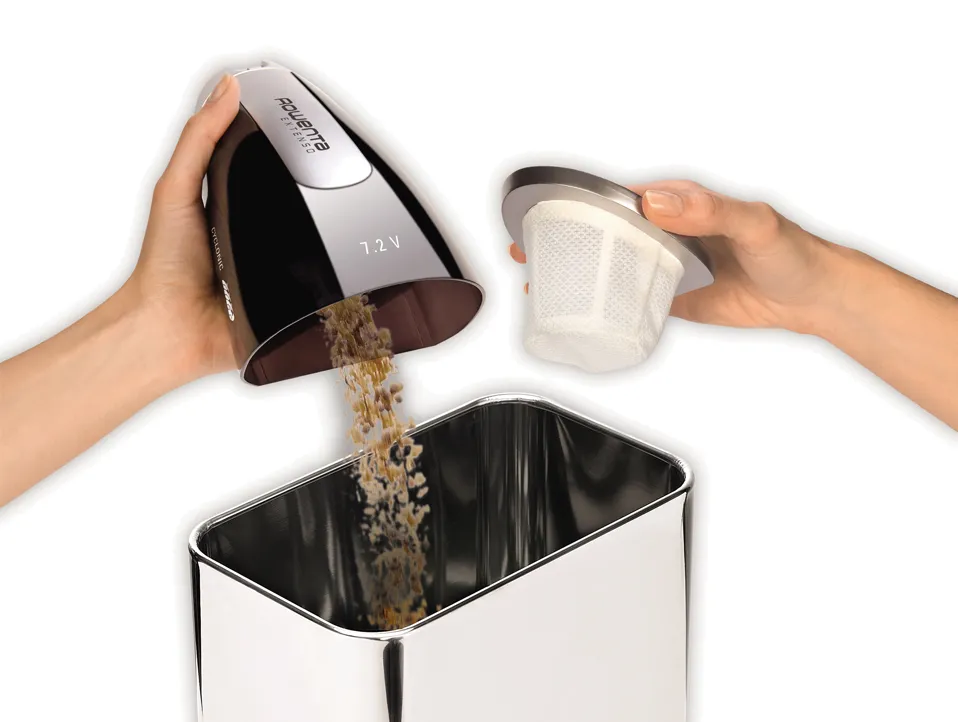 Mini-aspirador sem fio: Dry Tipo de tecnologia: Ciclónica Potência: 7.2 V Velocidades: 1 Autonomia: 16 min Tipo de bateria: NiMh Número de baterias: 6 Tempo de recarga: 16 h Tipo de recarga: Corrente elétrica Indicador de carregamento da bateria Capacidade do depósito: 0,35 L Filtragem: Filtro permanente lavável Nível de ruido: 77 dB(A) Pega ergonómica Fácil limpeza Acessórios: Escova telescópica; Escova para ranhuras Cores: Translucent Brown / Metal Pearl