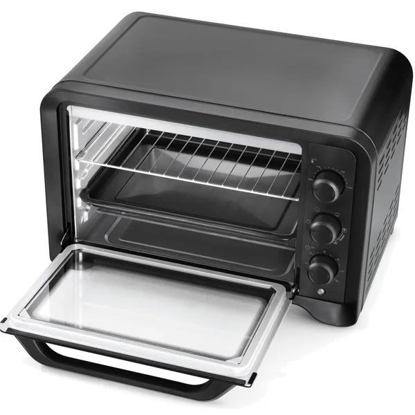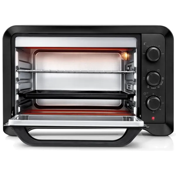 Potência: 2000W (potência com função Grill) Capacidade: 45lts 6 temperaturas Temporizador: até 60min Iluminação interior Temperatura de 100º a 230ºC Dimensões interiores 40×26,5×62,3cm Porta de vidro duplo
