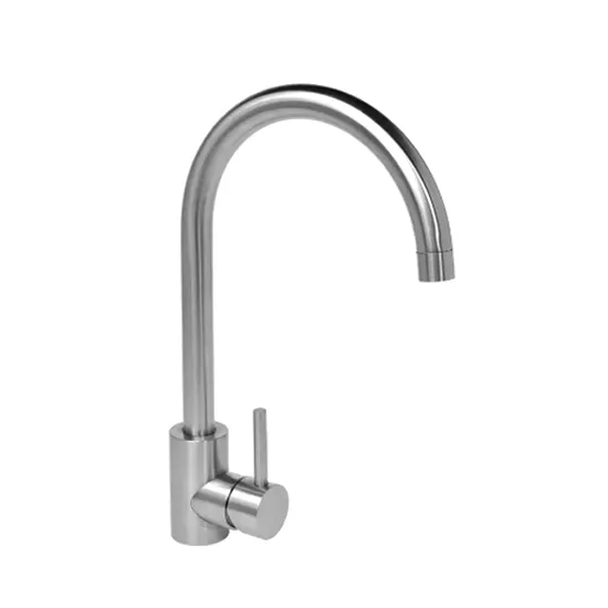 Misturadora monocomando de bica giratória em aço inox AISI 316.Perlator anti-calcário.Flexíveis em aço inox.Altura da misturadora: 348mmAltura da torneira: 235mmCorpoØ: 45mm