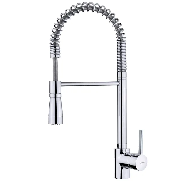 Monocomando de cano alto giratório e flexível Chuveiro extraível de 2 saídas: normal e duche Filtro anti calcário Mola flexível de grande resistência Tubo flexível em aço inoxidável Cartucho de discos cerâmicos Tubos de alimentação flexíveis 3/8 Cor: Cromada
