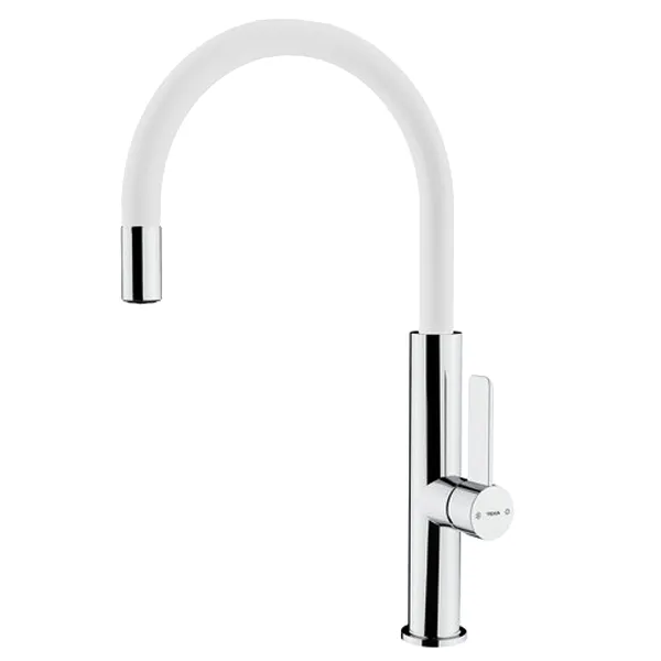 Monocomando de cano alto giratórioFiltro anti calcário integrado no canoTubos de alimentação flexíveis 3/8Cor: Branco / Cromada