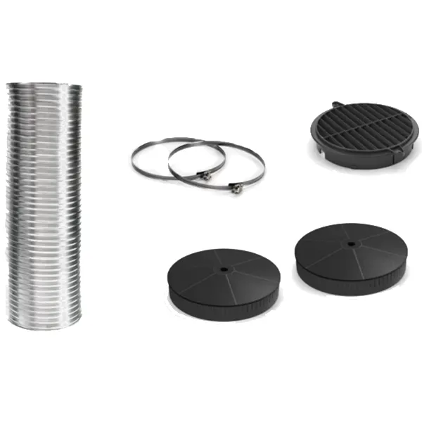 Para instalar em modo de recirculação Composto por 2 filtros de carvão ativo, tubo flexível de Ø150mm, 2 braçadeiras e um separador de circulação Compatível com os seguintes produtos: