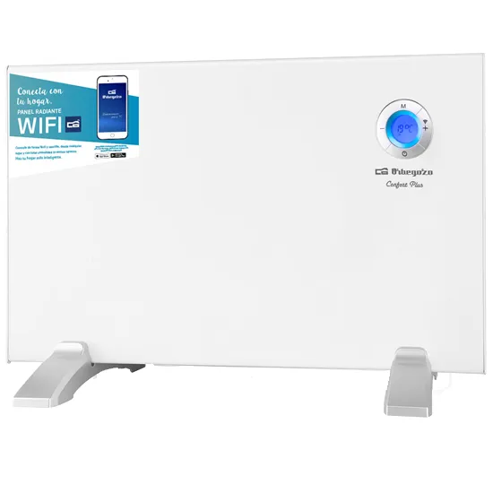 Potência: 1000W Indice de proteção IP21 Conexão sem fio WiFi com APP ORBEGOZO. Programação diária e semanal, em tiras de uma hora. Três modos de operação: conforto, eco e anti-gelo. Função de detecção de janelas abertas. Aperfeiçoe sua energia. Convecção rápida e difusão de calor. Faixa de temperatura: 7 ° C – 35 ° C. Elemento de alumínio. Controle remoto. Limitador térmico de segurança. Função de bloqueio para crianças. Display LCD digital. Controle de toque. Suporte para parede e piso (inclui ferramentas de instalação). Fácil instalação. Interruptor de desconexão. Conexão 230V ~ 50Hz. Medidas (LXAXP): 790x380x70mm