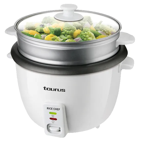 Potência: 700W Capacidade: 1,8Lts 6 – 7 rações Recipiente extraível com revestimento anti-aderente. Acessório cozinhar a vapor. Função de coação e mantêm quente. Conjunto de utensílios de cozinha.