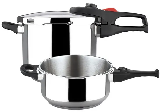 Capacidade: 4 L. + 6 L. Feita de aço inoxidável cirúrgico 18/10. Feita de aço inoxidável de alta qualidade para durabilidade e excelentes resultados Fundo difusor de calor 5 camadas de encapsulamento permite rápida e distribuição uniforme do calor. Cinco mecanismos de segurança: sistema automático de fechamento, sensor de pressão, válvula de alívio de pressão depressor válvula de segurança e tampa janela. Sistema automático de bloqueio no punho garante um manuseamento fácil e segura. Aço inoxidável superfície interna impede que o alimento grude e facilita a limpeza. Lado resistente ao calor lida garantir uma condução confortável e segura. Reduz o tempo de cozimento em 70% mantendo com sucesso as vitaminas e nutrientes. Cesto opcional de aço inoxidável. Compatível com todos os tipos de fogão, indução incluído.