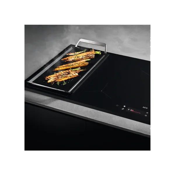 Biselada 4 zonas de indução: – 2 zonas: 2300 / 3200W / 210mm – 1 zona: 2300 / 3600W / 240mm – 1 zona: 1400 / 2500W / 145mm Display TFT tátil Controlo tátil Cozedura assistida: a partir do display TFT tátil pode selecionar o alimento que oretende cozinhar e o ponto de cozedura desejado Função SenseCook Pro: sonda térmica sem fios Função SenseCook Fry: sensor de fritura Função ponte à esquerda: Converte dias zonas de calor numa só com o dobro do tamanho Função derreter Função booster Função pausa Função Hob2Hood CountUp Timer Eco Timer OptiHeat Sinal acústico Desconexão automática Segurança para crianças Istalação Easyfix Dimensões (LxP): 780x520mm
