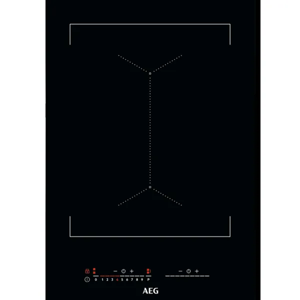 Funções: Indicador de calor residual em três passos, Alarme acústico, Função PowerBoost, Função Ponte, Segurança de crianças, Temporizador, Temporizador Eco, Bloqueio de painel, Aviso por minutos, Função Pausa, Desativar som, Temporizador