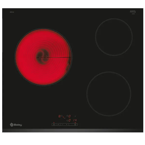 Potência das zonas: 1 x 1.2 KW, 1 x 2.0 KW, 1 x 2.5 KW