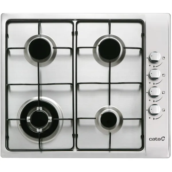 4 queimadores de gás: – esquerda cima: 1 semirrápido de 1,75kW – esquerda baixo: 1 coroa tripla de 3,5kW – direita cima: 1 semirrápido de 1,75kW – direita baixo: 1 auxiliar de 1kW Ligação eletrónica integrada no comando Válvulas de segurança Grelhas/Queimadores esmaltados Preparada para Gás Natural Injetores de Gás Butano incluídos na embalagem Potência total 8 kW Dimensões (axlxp) 45x580x500mm