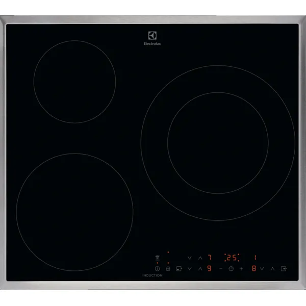Funções: Indicador de calor residual em três passos, Alarme acústico, Aquecimento automático, Função PowerBoost, Segurança de crianças, Função Hob2Hood, Bloqueio de painel, Aviso por minutos, Temporizador
