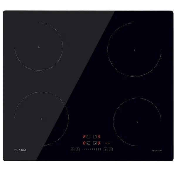 Mesa de trabalho: 59x52xm Potência total: 7200W 4 zonas de indução 9 níveis de potência Deteção do recipiente Indicador de calor residual Timer: 99min Child Lock Mode: Bloqueio de segurança Comandos frontais Placa Indução Limpeza Fácil Segurança: Comando automático
