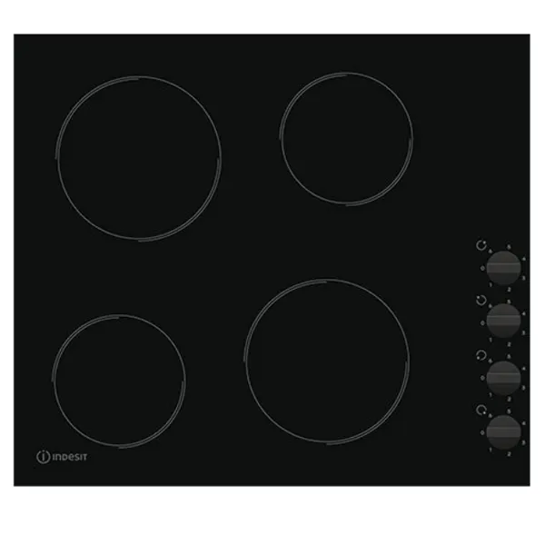 Placa Radiante de 58 cm 4 zonas de cozedura Comandos Laterais Potência total: 4,8 kW Acabamento: Recortado / Vidro preto Medidas (axlxp): 50x580x510mm